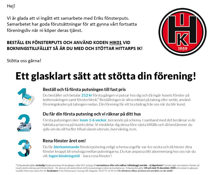 Missa inte morgondagens inskrivning med Hittarps IK